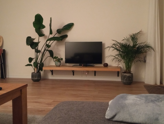 Aan de onderkant van de TV meubel wou ik een kleine plek hebben voor de bekabeling en mijn media center die op een Raspberry Pi draait. Hiermee zit alles mooi weggewerkt en uit het zicht.