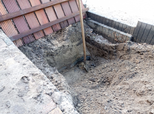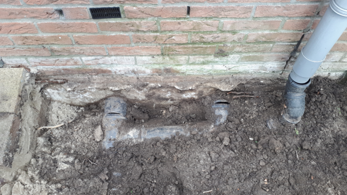 Door het zakken van de grond is de pijp ook erg gaan zakken waardoor de rioolpijp gedeeltelijk los is geraakt. Het is een kleine doorgang maar de wortels van de boom die dichtbij staat waren al in de rioolpijp gaan zitten. Op de lange duur zal dit dus een verstopping kunnen veroorzaken. Dit was dus iets wat opgelost moest worden.