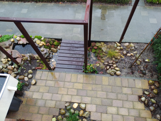 In deze foto is ook te zien dat er nog wat extra stenen en gras planten in de tuin zijn geplaatst die het wat sierlijker maken.