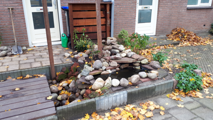 De gemeente bied adviesgesprekken aan van deskundige op het gebied van het loskoppelen van regenpijpen en het vergroenen van tuinen. Wij hebben een advies gesprek aangevraagd. De deskundige kwam langs en heeft ons goed kunnen informeren over de oplossingen die er mogelijk zijn en andere punten zoals het berekenen van hoeveel water er kan vallen in een hoosbui. Dit was een prettig en nuttig gesprek. Het advies heeft nieuwe inzichten en oplossingen geboden. Toen hebben nog wat meer nagedacht hoe we het regenwater dat uit de vijver overspoeld de grond in moet zakken. Met een hoosbui zal dit een hele hoop water zijn in een korte periode.
