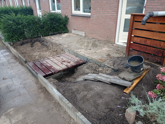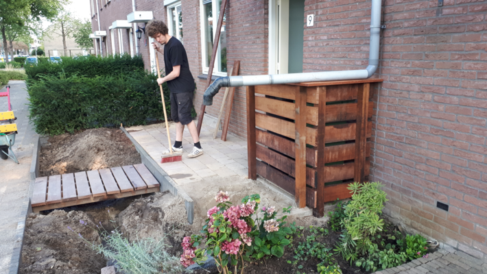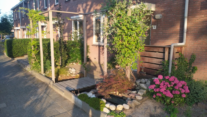 Halverwege 2020 kwam mijn vader met de mededeling dat hij nog wat zand overhad. We hebben besloten om dit zand te gebruiken om de voortuin op te knappen. En vanaf dat punt is dit project begonnen!Het doel was om een voortuin te maken met een veel planten voor verkoeling en verrijking aan groen. Ook kregen we het idee om de regenpijp los te koppelen en het regenwater in de bodem te laten zakken. Toen we waren begonnen zijn de plannen constant veranderd waardoor het einresultaat anders is geworden dan we eerst hadden verwacht.