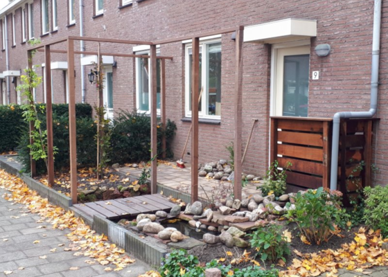 We hadden het idee om de regenpijp los te koppelen van het gemende riool. Dit kan gedaan worden door het water op te vangen in een regenton, grindbak en veel meer andere manieren. De gemeente promoot het loskoppelen van de regenpijp in wijken waar er nog een gemengd riool is. De gemeente bied ook een adviesgesprek aan met een deskundige op het gebied van het afkoppelen van de regenpijp en het vergroenen van tuinen wat veel informatie, ideeën en inspiratie bied.Waarom de regenpijp afkoppelen?