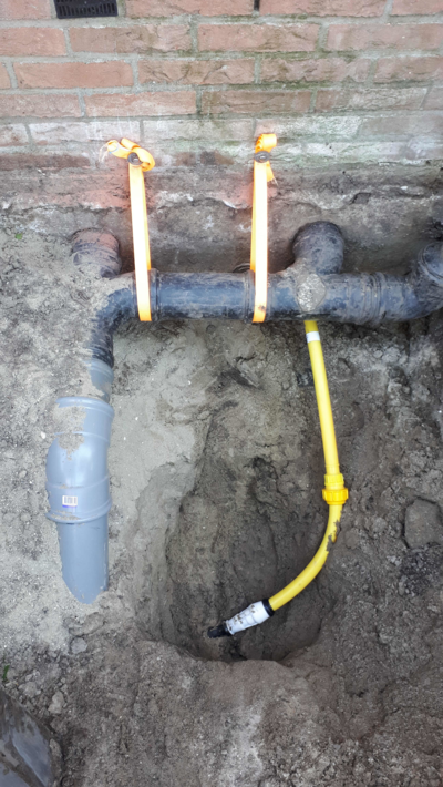 Door het zakken van de grond was de gas aansluiting gaan knakken bij de fundering. Nu we bij deze aansluitingen konden heb ik de netbeheerder gebeld die dezelfde dag nog een andere aansluiting heeft geplaatst.