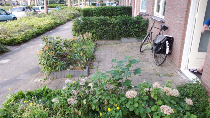 Een paar jaar verder staat de voortuin er nog goed bij. Onkruid is nu ook opmerkelijk een stuk minder. Het onkruid wat er groeit is makkelijk weg te halen omdat er minder tegels in de weg liggen. Het water zakt bij hoosbuien rustig de grond in en heb verder weinig onderhoud aan de voortuin.